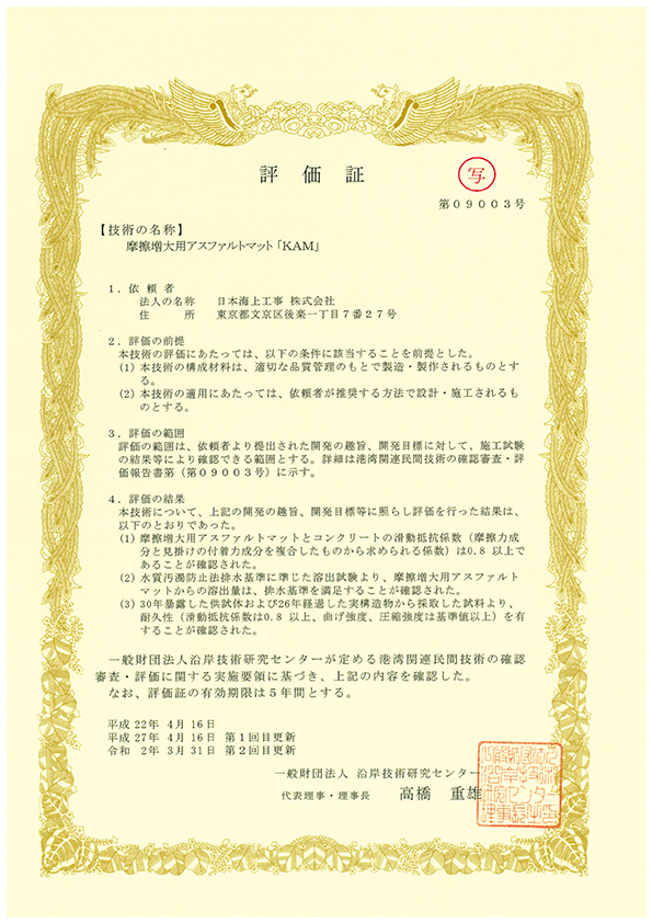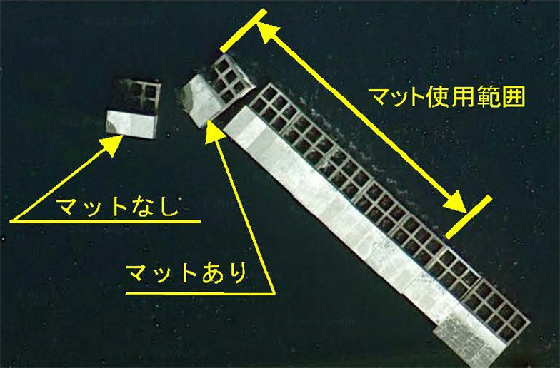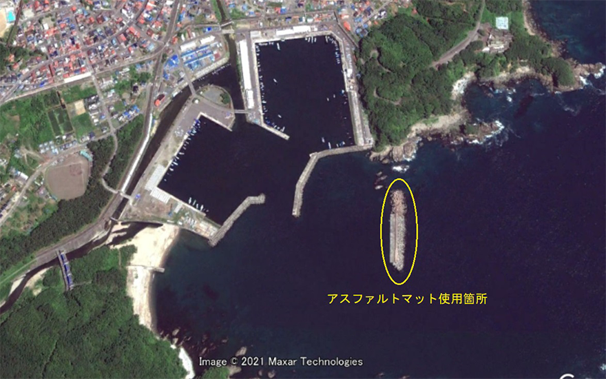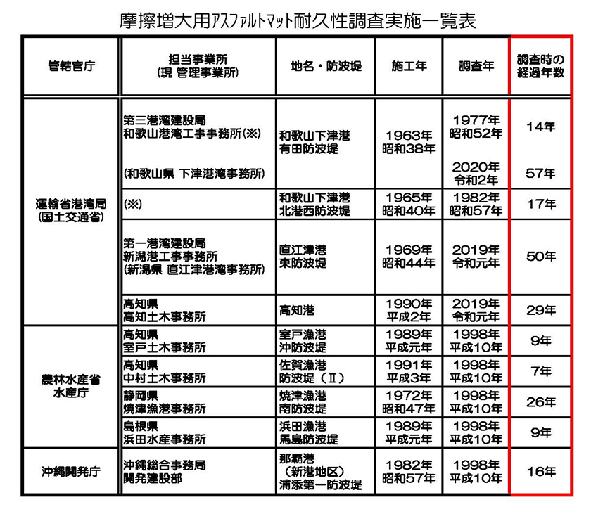 実海域で長期間供用(50 年以上経過) されたケーソン底面から採取したアスファルトマットの長期耐久性が確認されました。