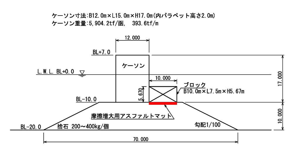 ・ケーソン堤底面の滑動抵抗(摩擦増大)