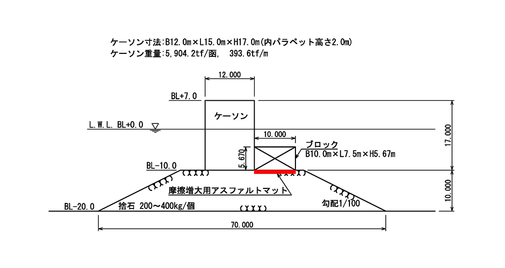 既設ケーソンの安定性増大につながります。