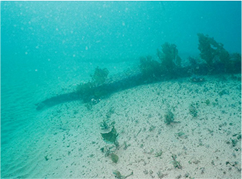 水中から引き揚げられたアスファルトマットブロック跡はあるが突き抜けや破損はありません。
