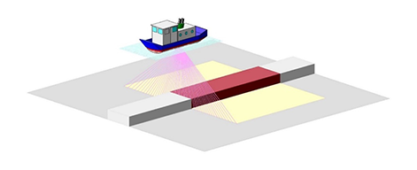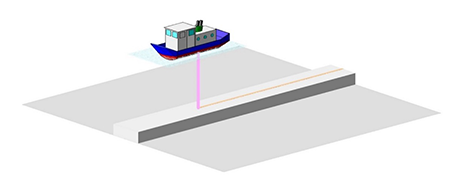 海底やダム等の水面下の水深を測ります。 マルチビーム・シングルビーム両方式ともGPSを使用した精度の高い測量です。